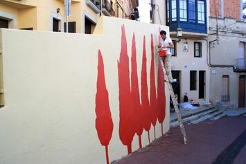 Proposo repintar i millorar el mural ubicat al mur del capdamunt del carrer d'Amunt (altrament dit Andreu Guri i que és una paret de titularitat pública) La paret està en mal estat de conservació degut a la falta de manteniment. La vaig pintar fa deu anys (dins els actes de l'Any Espriu) per voluntat del Centre Espriu i l'Ull Distret (jo mateix) i amb el suport econòmic de l'Ajuntament.